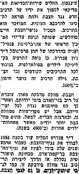 | ידיעה משנת 1962 מהעיתון דבר על הניסויים הראשונים שנעשו על החיסון חי מוחלש לחצבת מקור: ארכיון הספריה הלאומית |